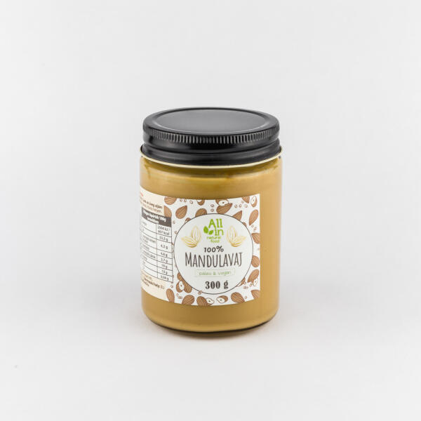 Természetes mandulavaj, mely 100% -ban csak pörkölt mandulát tartalmaz. Egy nagyon könnyed, folyékony állagú krém, mely tökéletesen harmonizál palacsintával, gyümölcsökkel, süteményekkel vagy kásákhoz, smoothiek-hoz adva. Kellemes ízének és selymes állagának köszönhetően önmagában kanalazva is szuper élményt nyújt. Tápanyagokban és egészséges zsírokban & fehérjében gazdag. Nem tartalmaz adalékanyagot, cukrot vagy ízesítőket. Glutén-és tejmentes. Összetevők: mandula (100%)